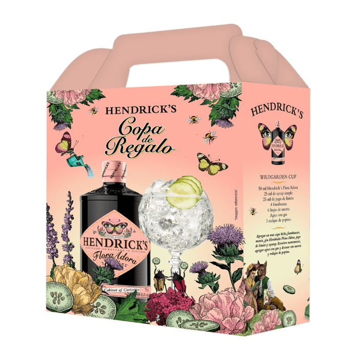 - Incluye botella 700cc + copa oficial Hendrick’s.