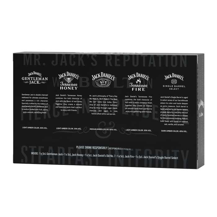 Pack miniaturas 50cc Familia Jack Daniel's. · Jack Daniel's Single Barrel. · Jack Daniel's Fire. · Jack Daniel's Old N°7. · Jack Daniel's Honey. · Gentleman Jack.