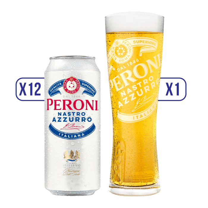 Compra ahora el Pack 12x Peroni 500cc + Vaso Oficial y disfruta la auténtica lager premium.